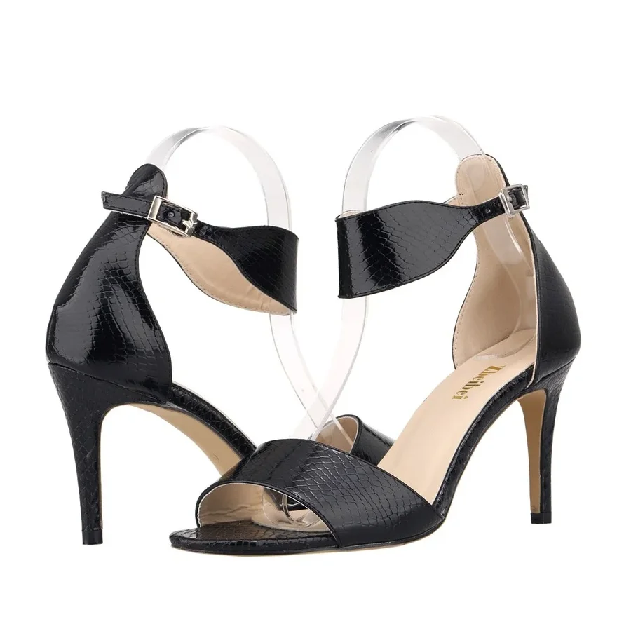 Women Ankle Strap Sandals Sexy Pumps Summer Crocodile Leather Open Toe High Heels Elegant Ladies Party Dress Wedding Shoes