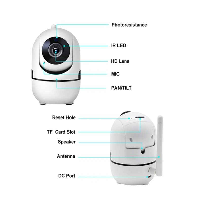 720P Resolution Smart Home Security WiFi Wireless Indoor Surveillance Night Vision Motion Sensor EU Plug