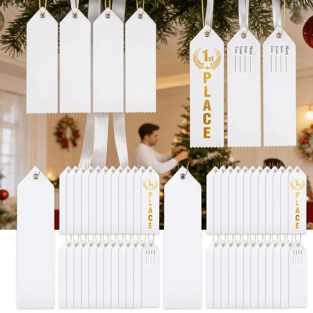 72Pcs Blank Award Ribbons DIY Medal Prize Ribbons with Attached Card, Rope Set Beautiful and Versatile Customizable Practical