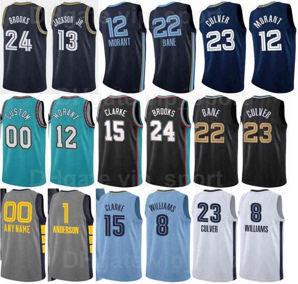 75th anniversary basketball print jarrett culver jersey 23 desmond bane 22 jaren jackson jr 13 deanthony melton 0 kyle anderson 1 ja morant, Black