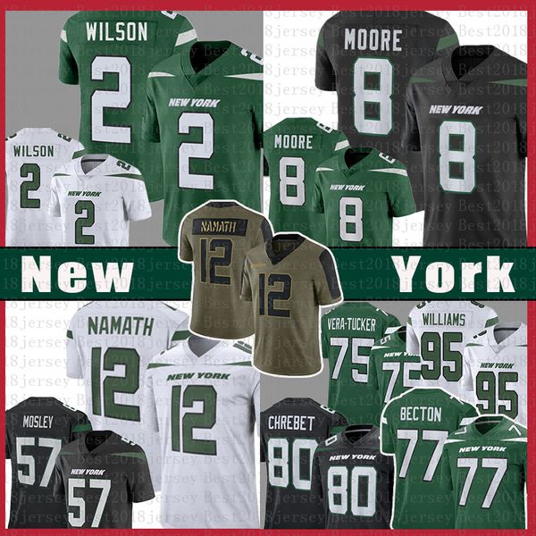77 mekhi becton 2 zach wilson 8 elijah moore football jersey joe namath yc.j. mosley alijah vera-tucker quinnen williams wayne chrebet mango, Black;red