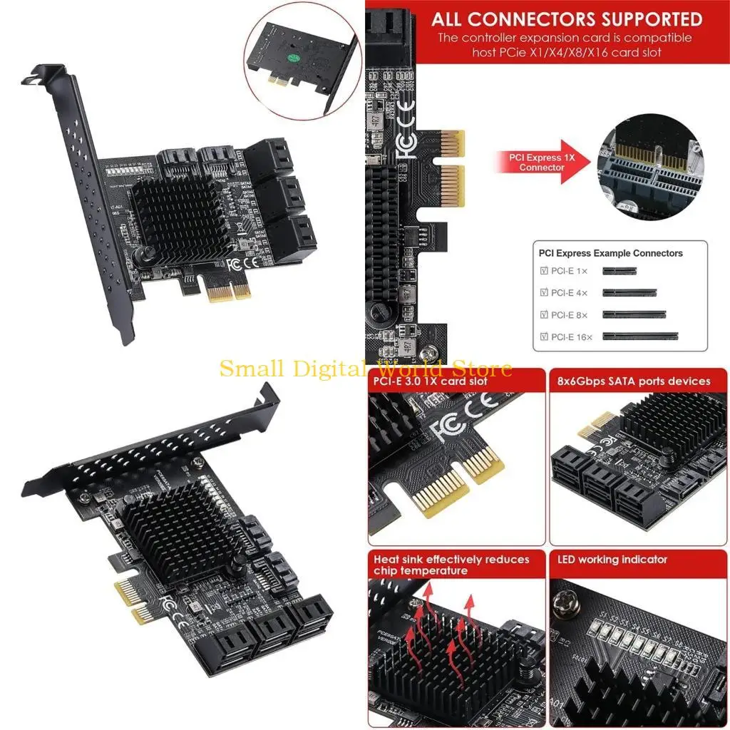 77UB PCIE to 8Port SATA3.0 Expansion Controller Card Adapters PCI-E SATA Adapter Cards Stable Operations Easy to Use