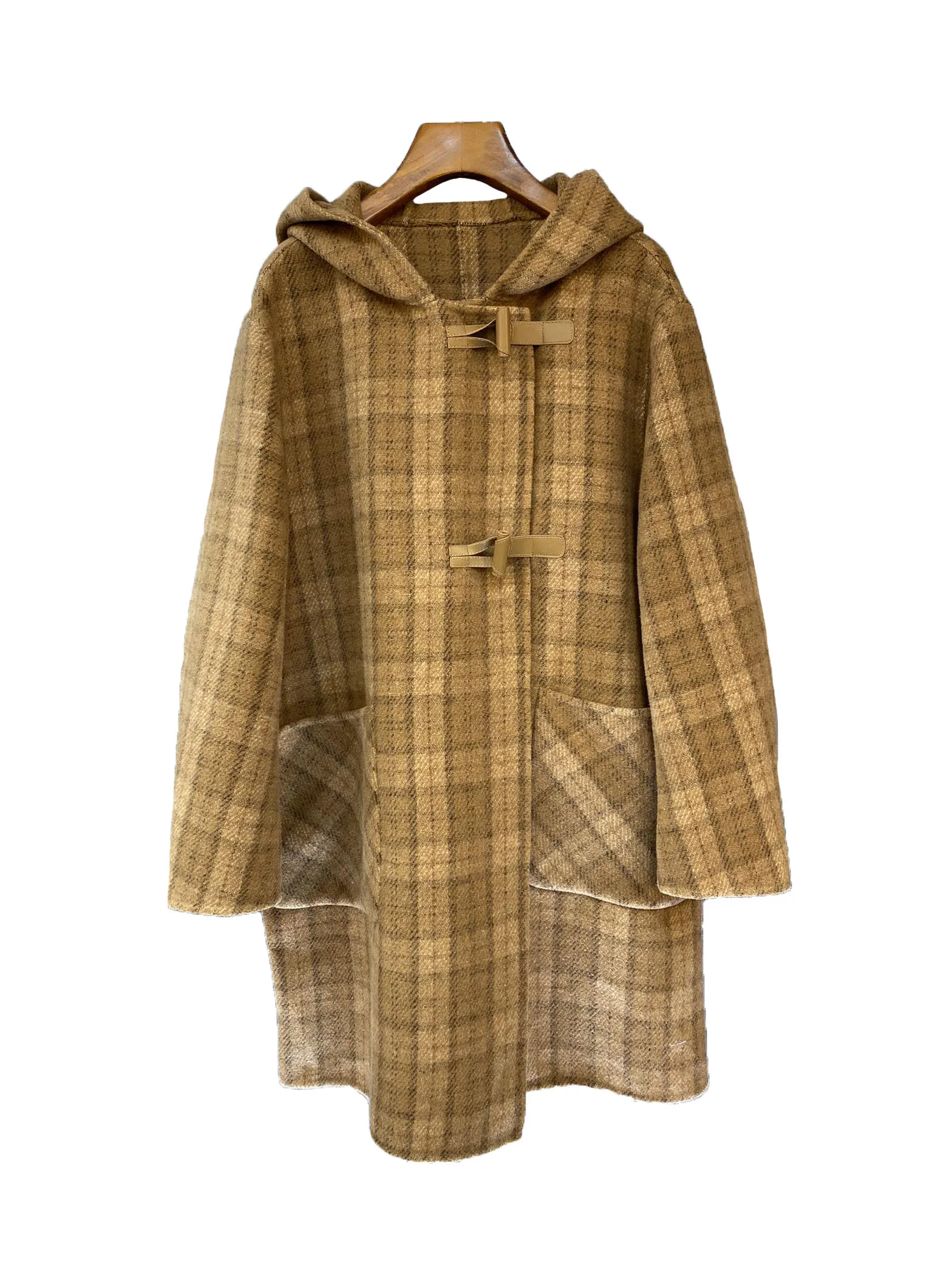 Твидовая куртка с капюшоном, длинный свободный крой, с пуговицами-рогами, теплый и удобный дизайн, новинка зимы 2023, 1212