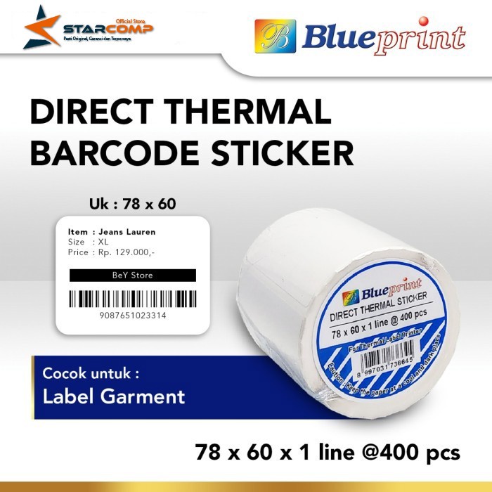 78x60 mm BLUEPRINT Kertas Direct Thermal Sticker Label Isi 400 pcs