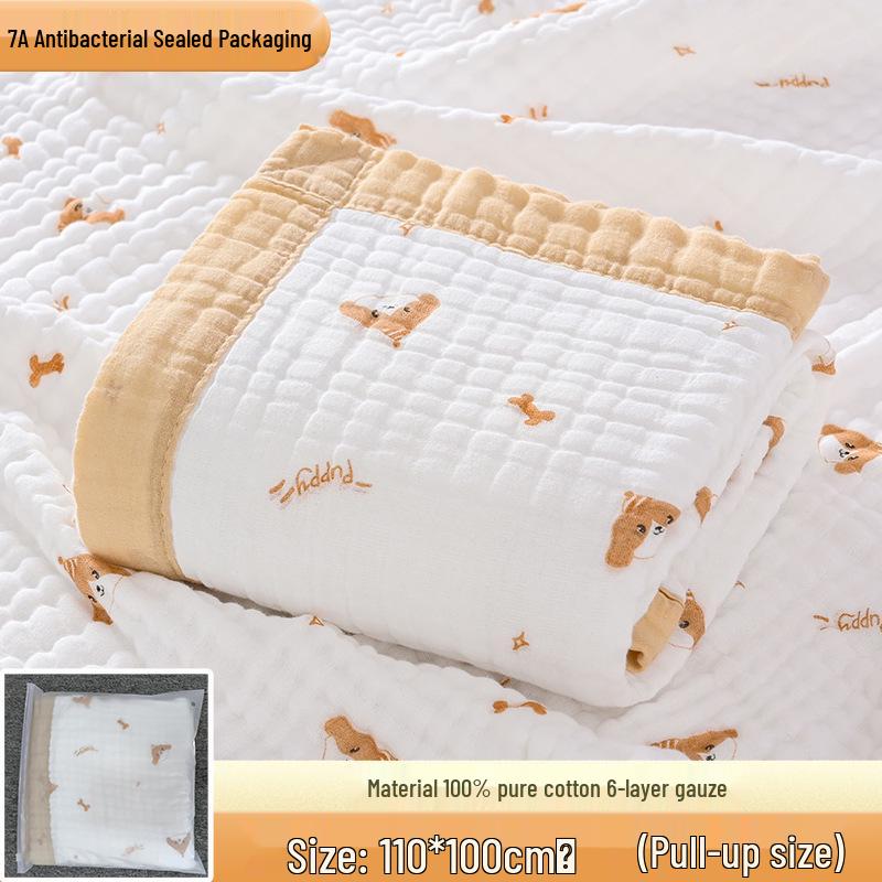 7A Антибактериальное детское банное полотенце-пеленка: Хлопок класса А, Шестислойная марля, Мультяшный принт, Очень большой для новорожденных 110x110 cm (Antibacterial, Single Package)