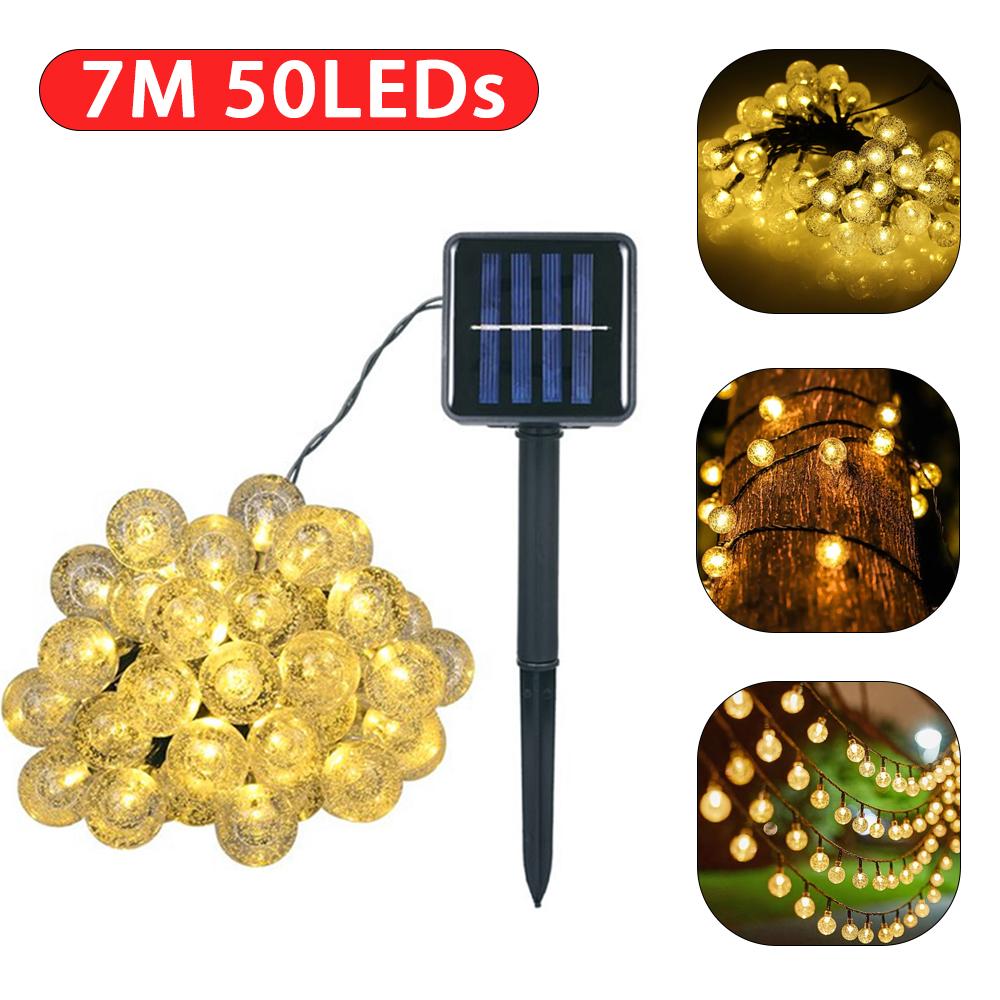 7M/22.97ФТ 50 Светодиодных Солнечных Шаров Атмосферы Водонепроницаемые Солнечные Гирлянды Уличный Садовый Солнечный Светильник - Теплый Белый