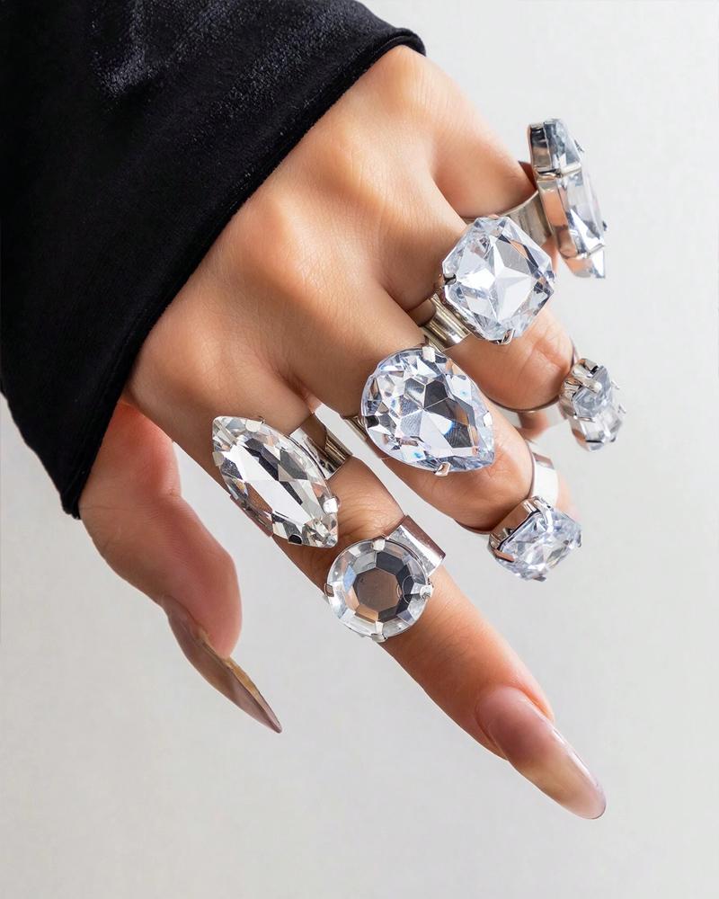 7PCS Geometric Silver Crystal Rings Set Rhinestone Knuckle Stacking Jewelry Gifts