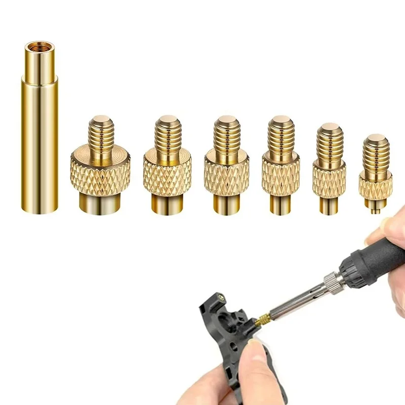 7Pcs Heat Insert Nut Iron Tip Head M2 M3 M4 M5 M6 M8 Brass Thread Embedded Kit Heat Insertion Tool For 3D Printer Soldering Iron