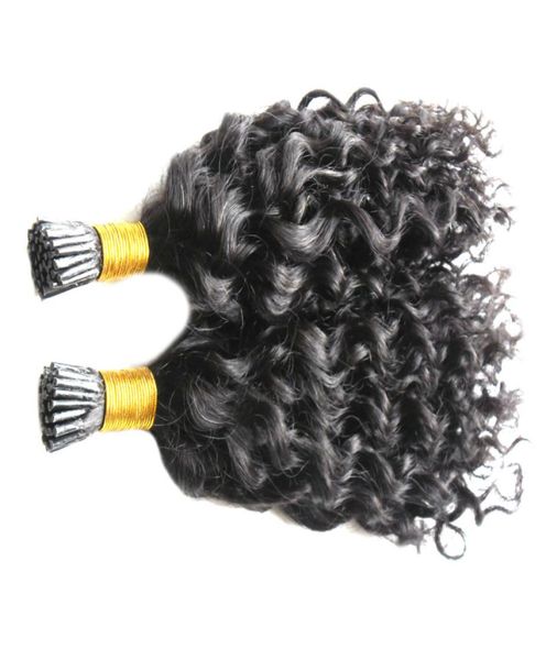 7a unprocessed virgin mongolian kinky curly hair keratin capsules human fusion hair nail i tip pre bonded afro kinky curly hair ex1591388, Black