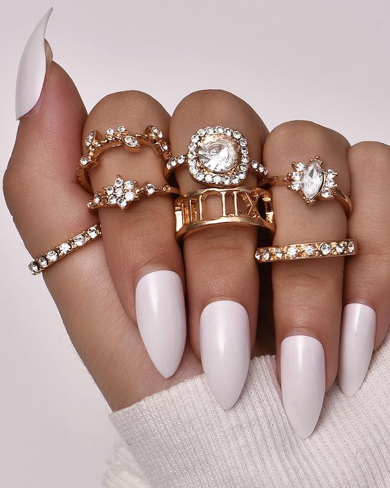 7pcs Rhinestone Geometric Rings Set, Gold