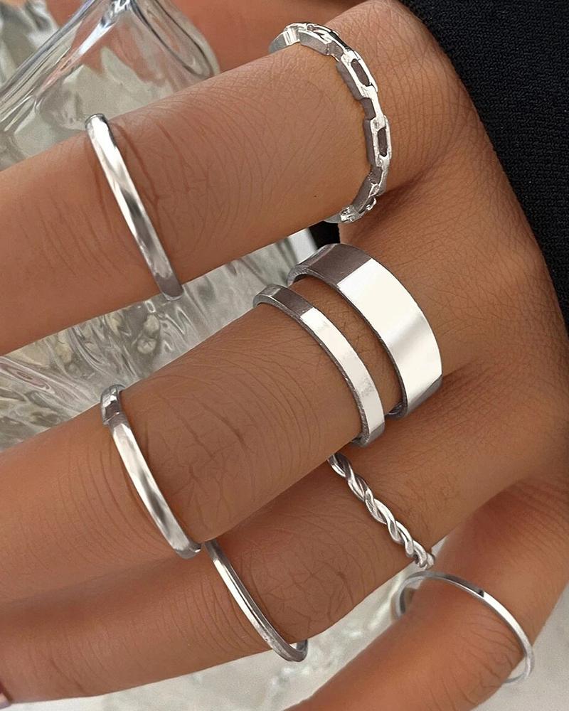 7pcs Simple Trendy Stackable Geometric Rings Set, Silver