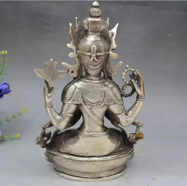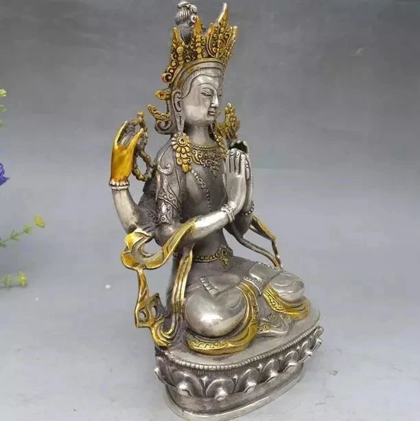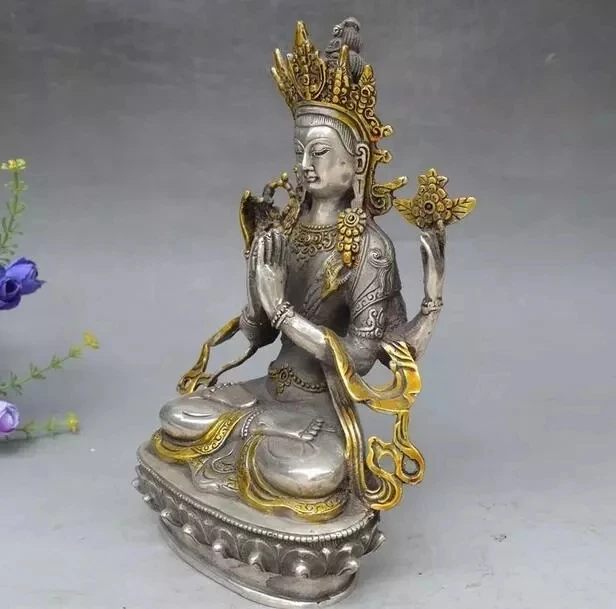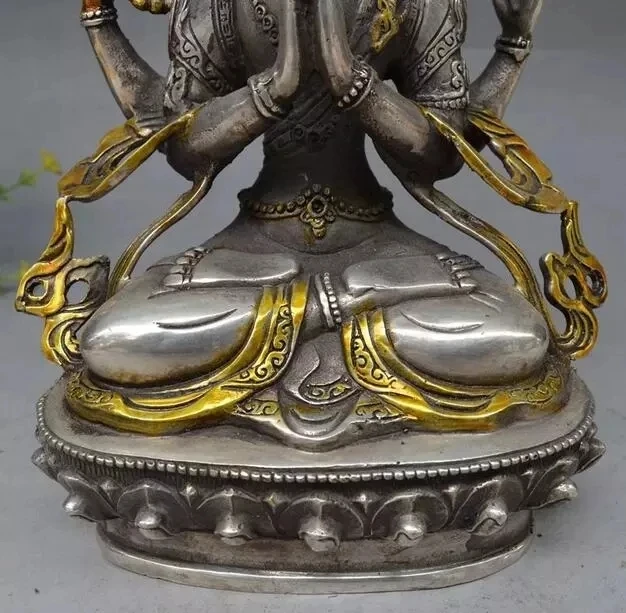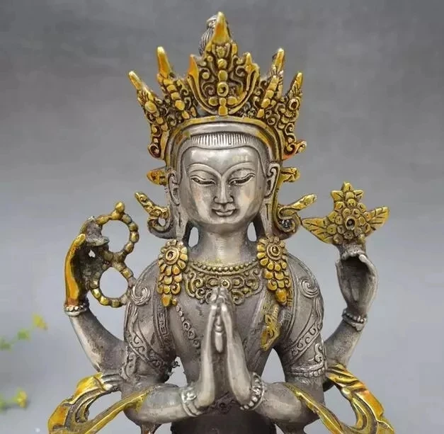 8 дюймов, тибетский буддизм, серебряный позолоченный, 4 руки, Будда, коридор