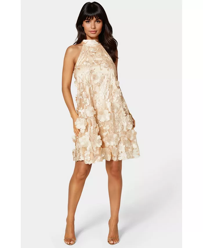 Женское мини-платье с 3D-цветочным принтом и бретельками через шею Bebe, коричневый/бежевый