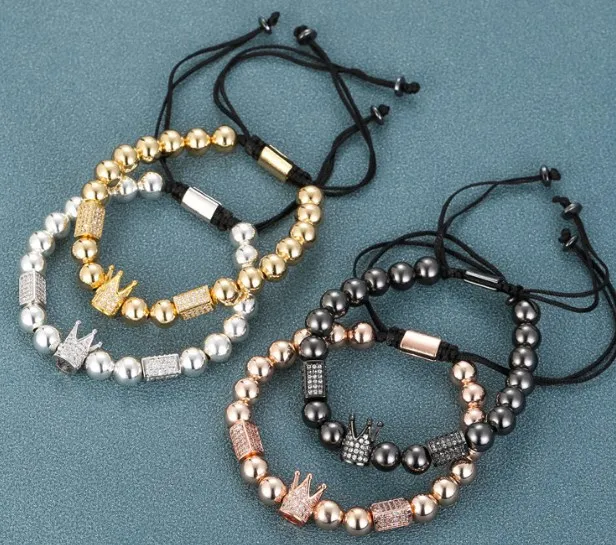 8 мм uhju43 Золото Серебро Медь cz Циркон кубический цирконий Эластичный регулируемый Мужской Женский Корона Будда для молитвы браслет для йоги...