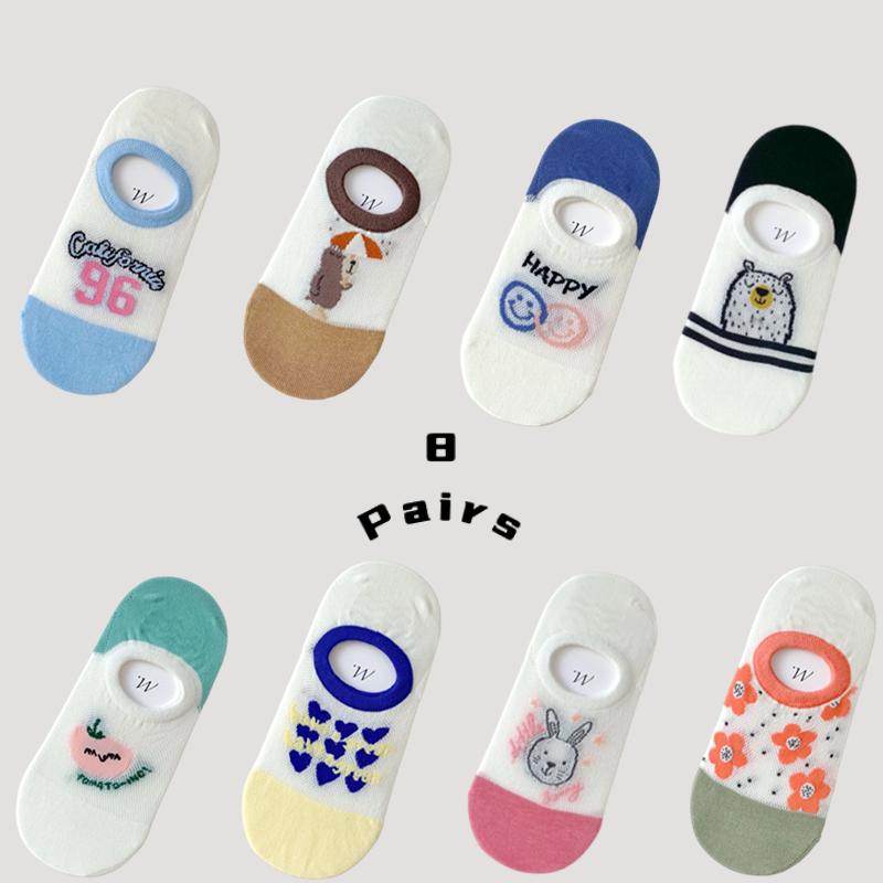 8 пар носков, женские корейские носки, летние тонкие сетчатые дышащие носки-лодочки, не спадающие с пятки, невидимые носки с героями мультфильмов One Size