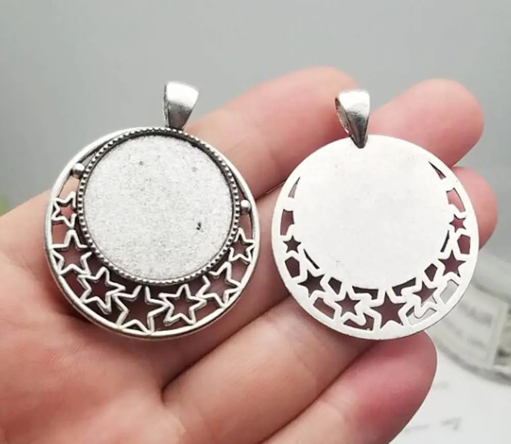 8 шт./лот 25 мм посеребренные подвески в античном стиле с кабошоном