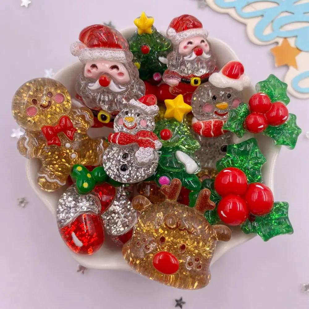 8 шт. смоляные милые красочные Санта-деревья лось снеговик колокольчики плоские стразы мультфильм рождественская фигурка скрапбукинг DIY декор