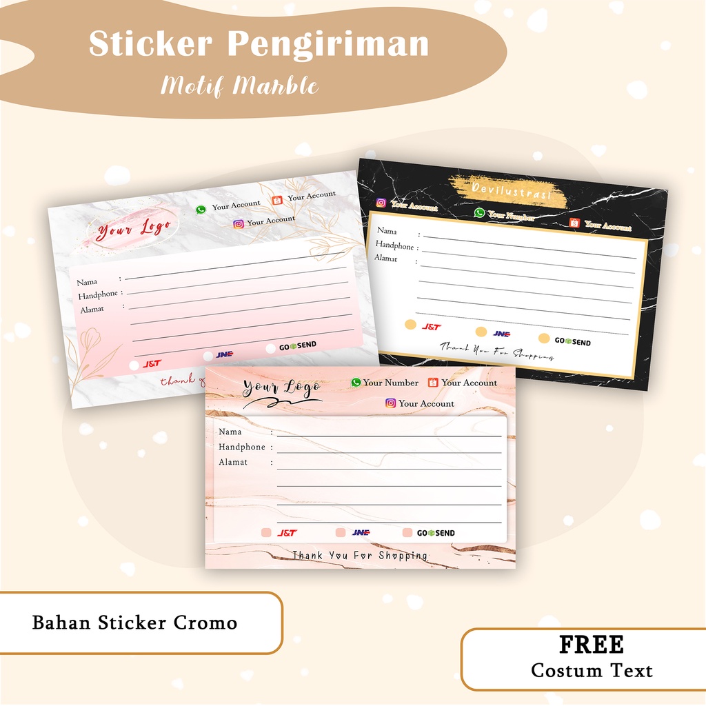 STIKER LABEL PENGIRIMAN ONLINE SHOP MOTIF MARBLE / SHIPPING LABEL PENGIRIMAN PACKING COSTUM DEVILUSTRASI