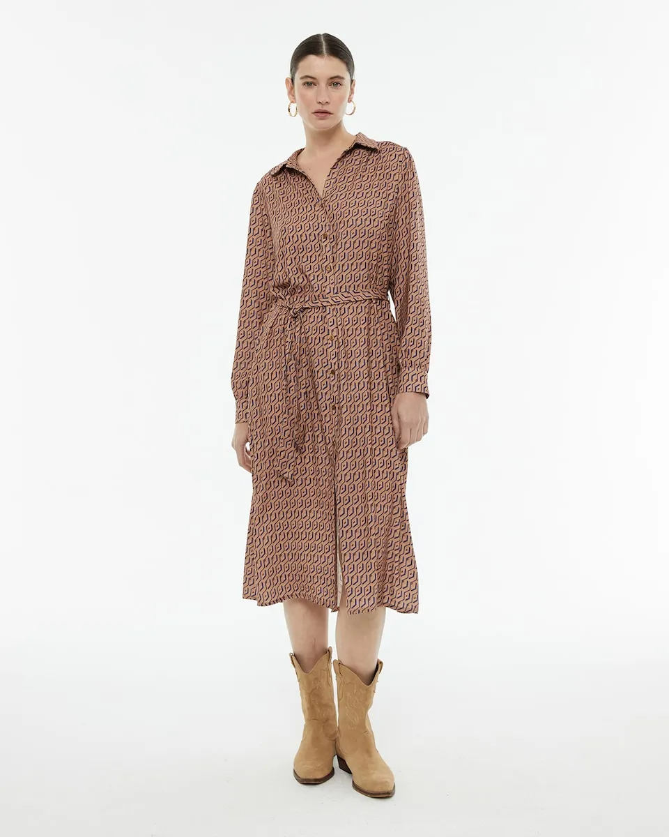 Платье-рубашка миди с длинными рукавами и геометрическим принтом Andam, цвет Camel