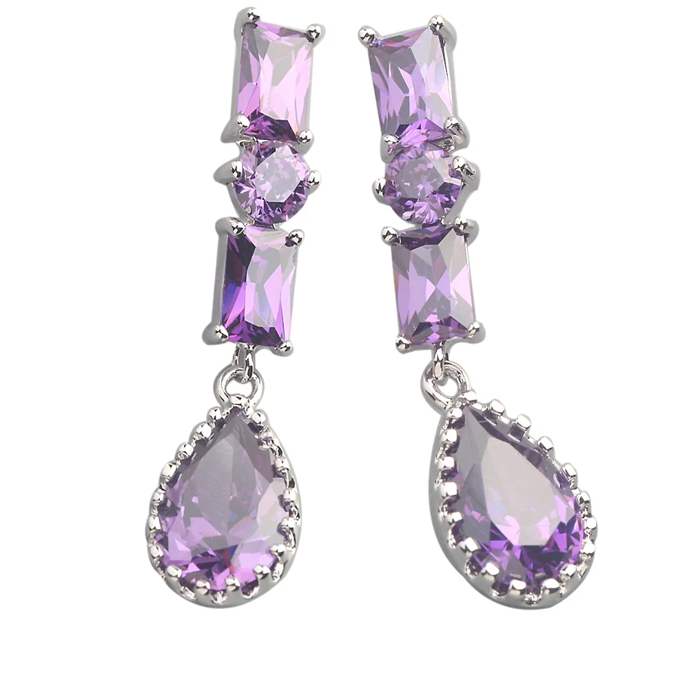 8*10 мм, Фиолетовый аметист, Стерлинговое серебро серебряные серьги-гвоздики ED208
