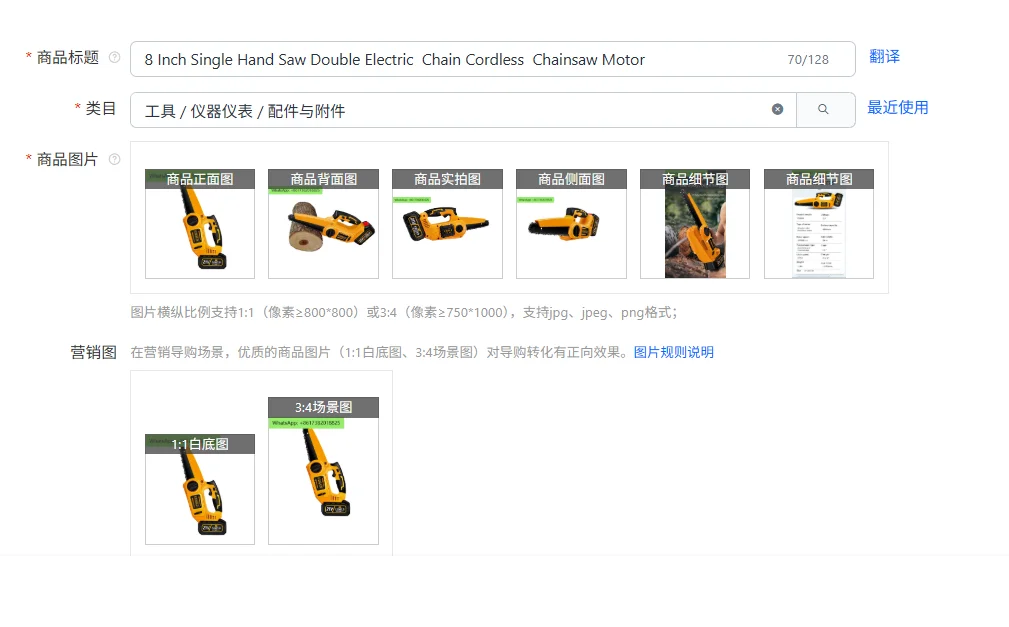 8 Inch Single Hand Saw Double Electric Chain Cordless Chainsaw Motor
