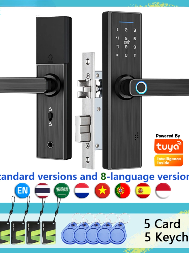 8 Language Tuya Smart APP WIFI Fingerprint Door Lock IC Card Digital Code Electronic Reader Home Security Mortise
