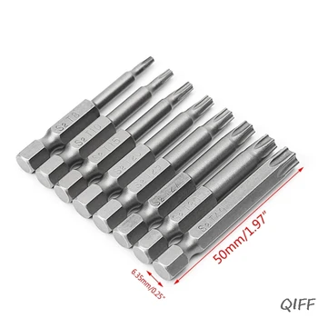 8 Pcs/Set 1/4 Inch 50mm T8-T40 Magnetic Torx Electric Screwdriver Bits Kit Mar28