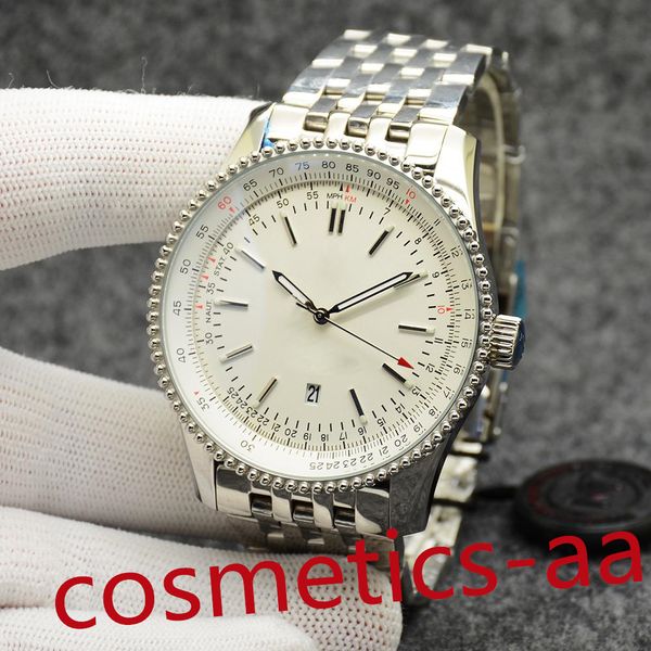 8 color men watch quality navitimer watchs quartz movement 46mm silver dial 50th anniversary men watch stainless steel strap mens wristwatch, Slivery;brown