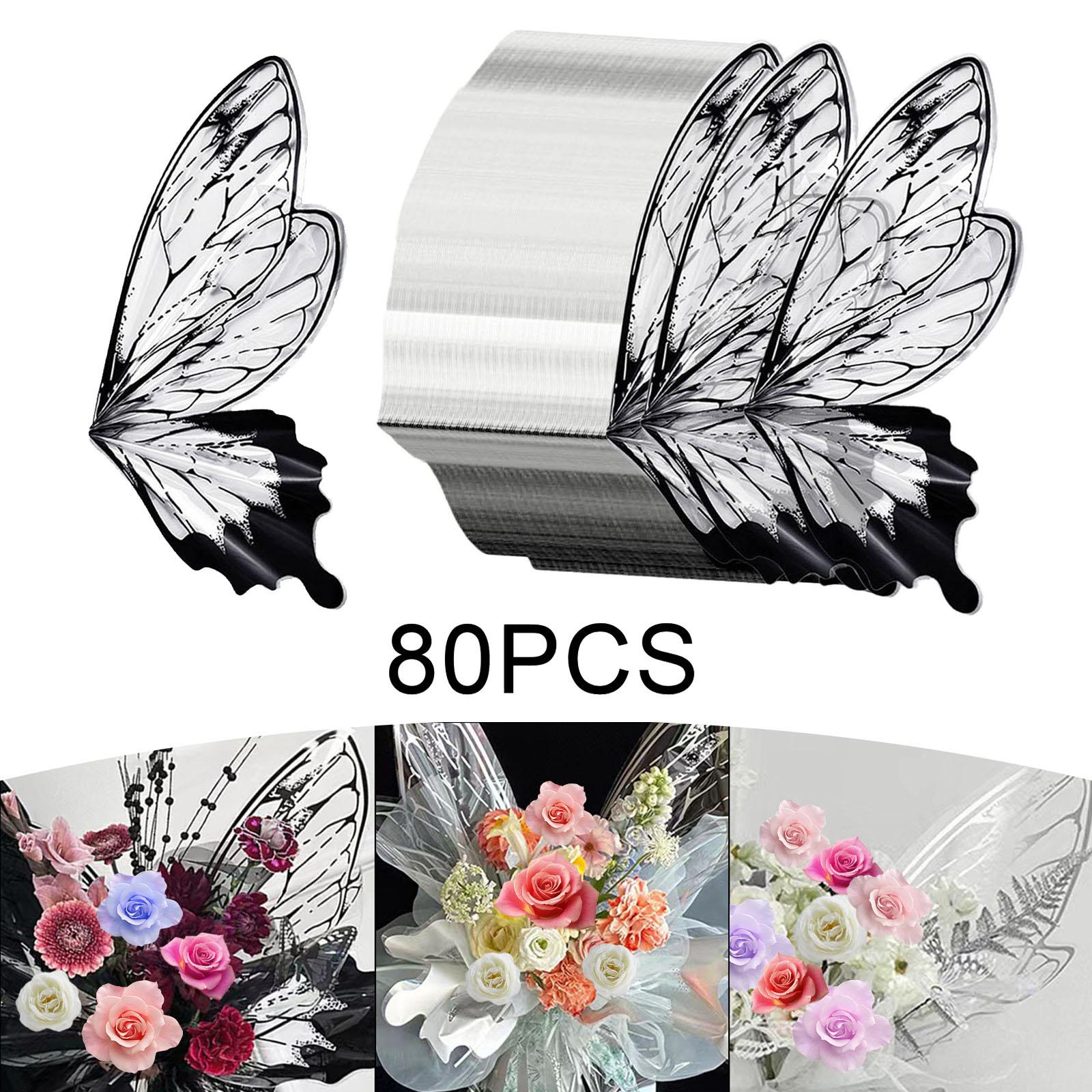 80 шт. упаковочной бумаги для цветов в виде крыльев бабочки, модные флористические принадлежности для выпускного, дня рождения, поделки своими руками, свадьбы чёрный