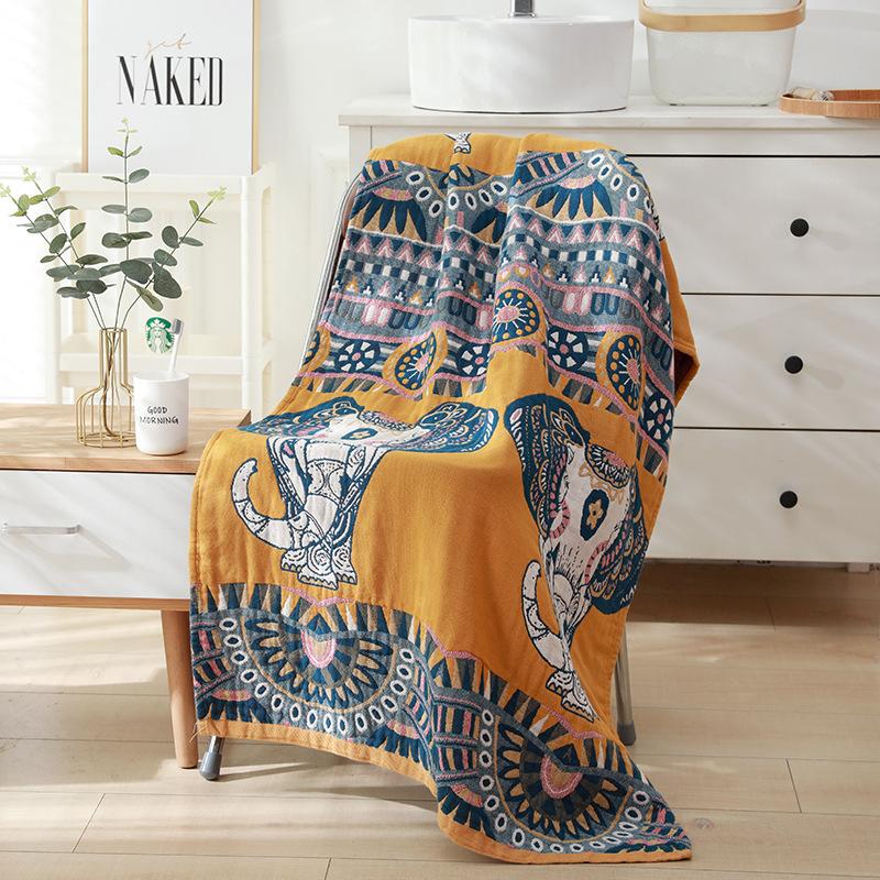 80 x 160 см чистое хлопковое марлевое банное полотенце тканое мультяшное банное полотенце летнее домашнее ванная большое полотенце мягкие пляжные полотенца 80x160cm&1pc жёлтый/синий