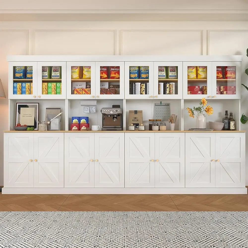 71"" Tall Farmhouse Kitchen Pantry, Large Storage Cabinet With Glass Doors, Freestanding Coffee Bar Hutch With Microwave Stand,