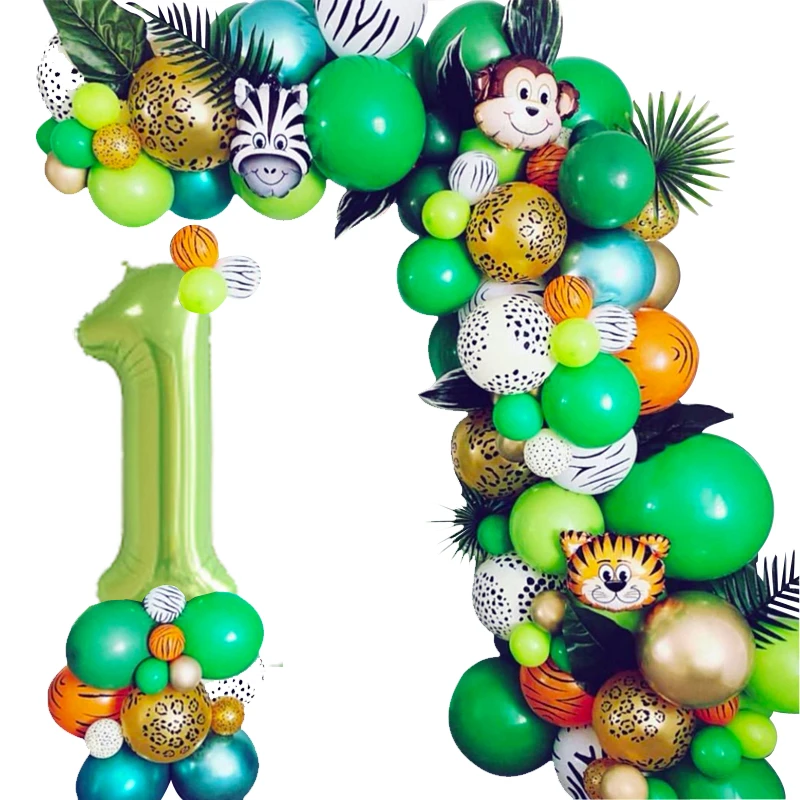 82 шт./лот Джунгли животных Зеленый воздушный шар гирлянда Арка комплект Тигр обезьяна Graffe латексные шары День рождения украшения детский ду...