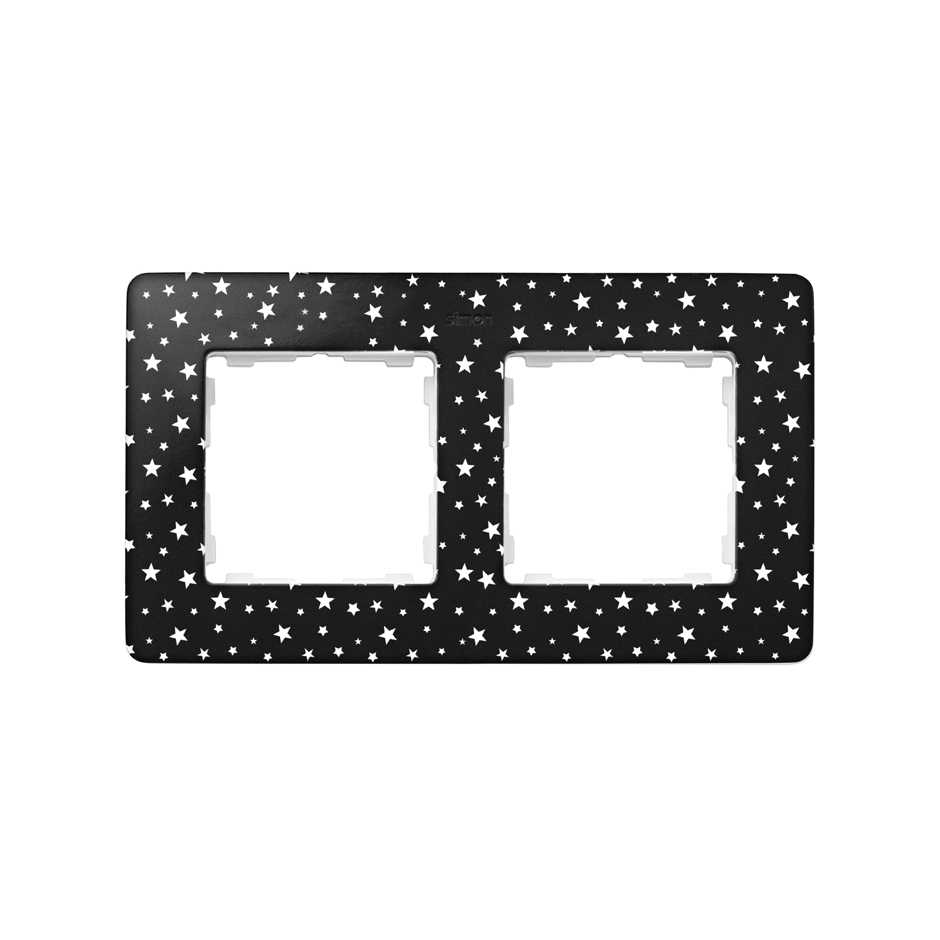 8200620-222 Рамка декоративная, 2 поста, Simon 82 Detail Original, чёрный в белые звёзды-белый, 8200620-222