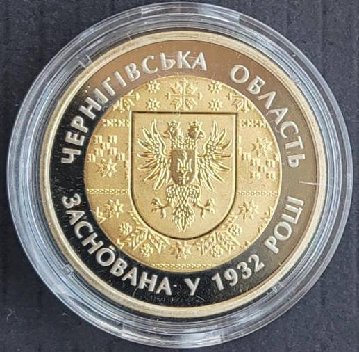 Монета присвячена краю, розташованому в межах поліської та лісостепової зон - Чернігівщині. Ця земля має тисячолітню славетну історію, що зберіглась у численних пам`ятках та святинях. Чернігівська область - це регіон з потужним інтелектуальним, економічним і природним потенціалом, який має індустріально-аграрну структуру господарства. У галузевій структурі промисловості області пріоритетними є харчова, паливна, машинобудівна і металообробна, деревообробна, целюлозно-паперова, легка. Помітну роль відіграють електроенергетика, хімічна та нафтохімічна промисловості. Область також має значний сільськогосподарський потенціал.