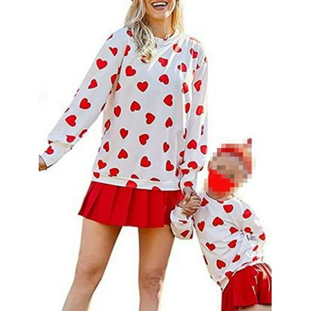 EYIIYE Valentine s Day Family Matching Parent-Child Sweatshirt Love Heart Print Round Collar Long Sleeve Pullover Tops