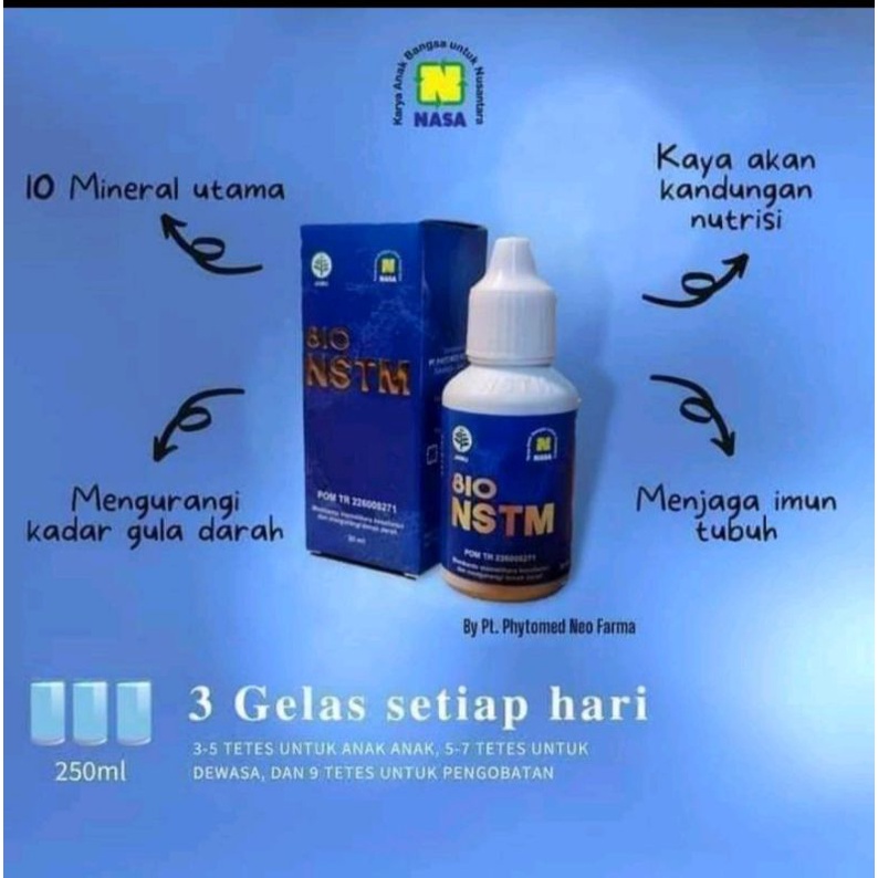 NSTM atau Nasa Trace Mineral adalah obat tetes herbal yang bisa digunakan untuk kesehatan tubuh kita. Trace mineral ini mengandung unsur mineral ( makro dan mikro ) yang bersifat alami, seimbang, murni dan ionik, sehingga mudah diserap oleh tubuh dan sangat berperan penting dalam fungsi - fungsi syaraf.