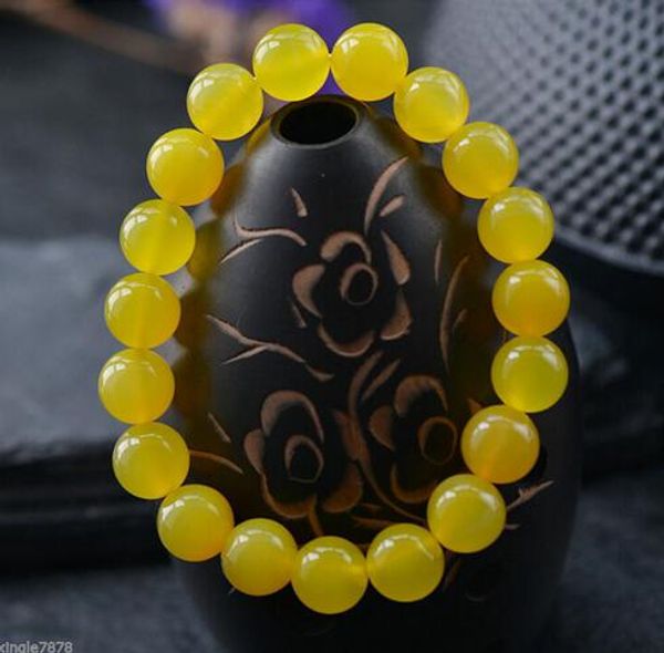 8mm natural yellow gem round bead bracelet adjustable 7.5 '' jade, Black