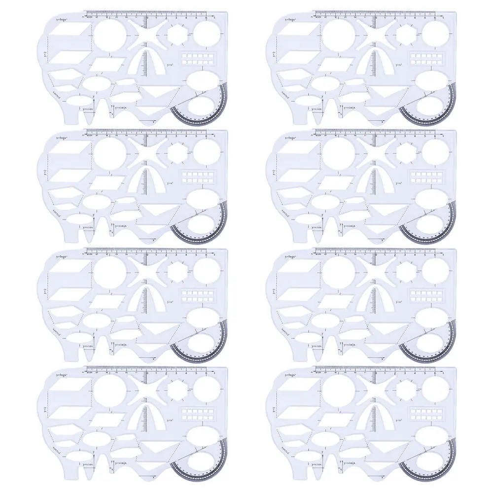 8pcs Multifunctional Geometric Ruler Set Transparent Function Drawing Tool For School Math Geometry Drafting French Curve