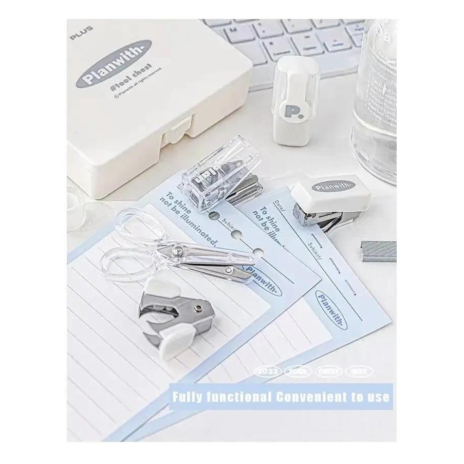 8pcs Stationery Set Punching Machine Stapler Multi Functional and Efficient Punching Machine Stapler Tool Box