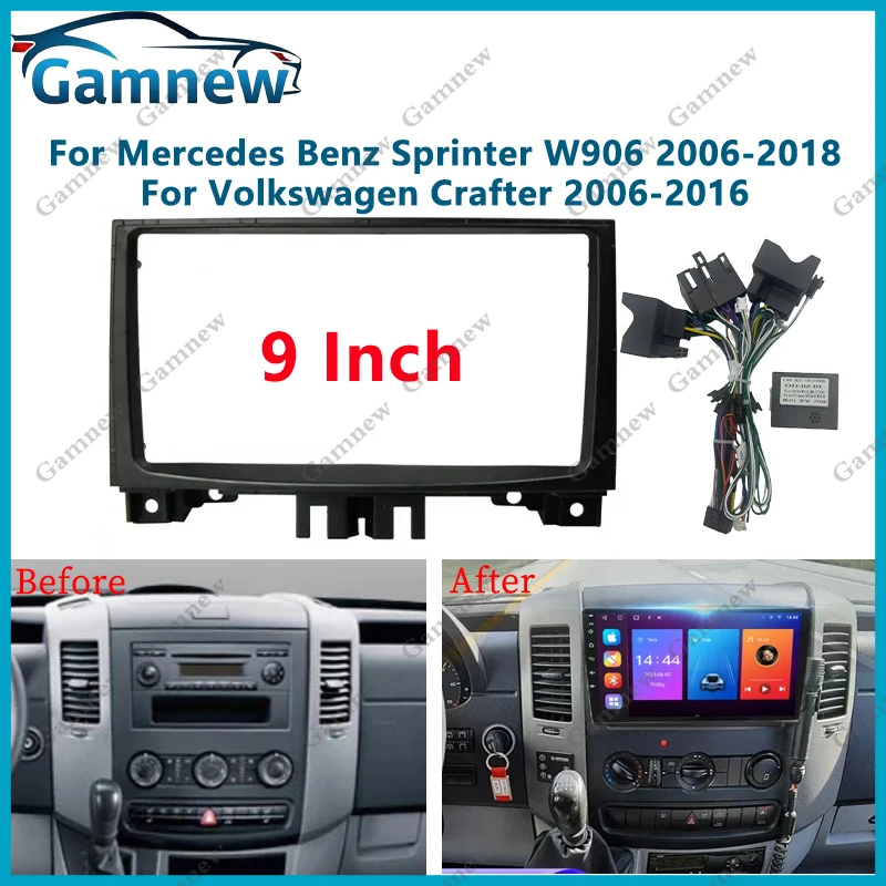 9-дюймовая автомобильная рама, адаптер для фасции, Android-радио, комплект панели приборной панели для Mercedes-Benz Sprinter (W906) Volkswagen Crafter