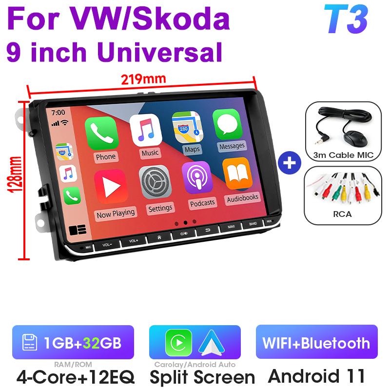 9-дюймовый автомобильный радиоприемник Android 12 для VW Volkswagen Skoda Octavia Golf Passat B6 B7 Polo Jetta Tiguan Touran 2 Din авторадио Carplay
