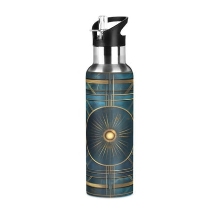 Water Bottles 34oz Straw Lid Wide Mouth Stainless Steel for School Sport Travel Abstract Cerulean Geometric