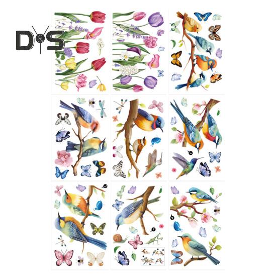 9 листов/компл. весеннее окно цепляются красочные цветы птицы бабочки водостойкие ПВХ многоразовые электростатические стеклянные украшения наклейка наклейка