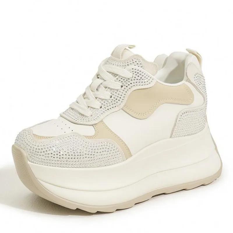 9 см женские роскошные ботильоны из микрофибры из синтетической кожи на весенней платформе с танкеткой, массивные кроссовки, удобные осенние ботинки, блестящая обувь 34 бежевый