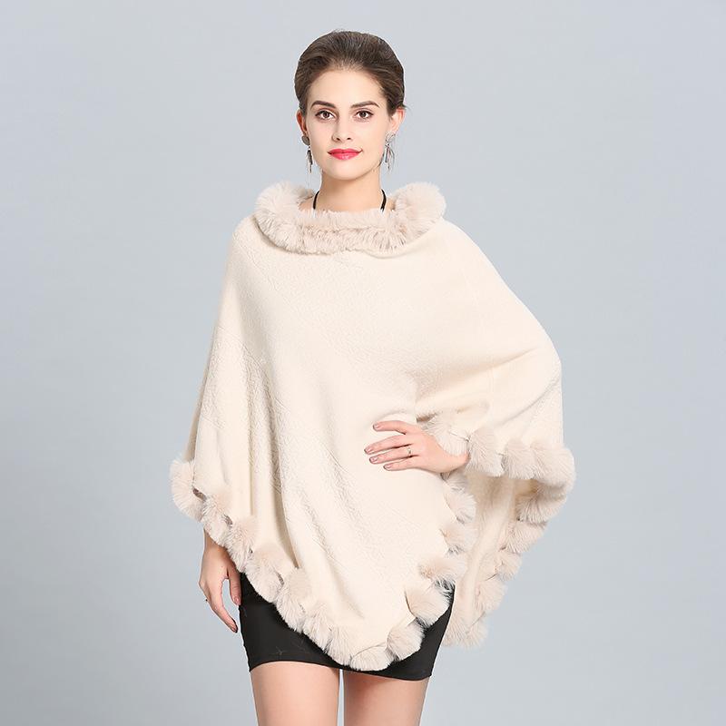 9 цветов, модная женская теплая зимняя жаккардовая ткань, плащ-пончо, искусственный кашемир, накидка с круглым вырезом, меховая треугольная вязаная уличная одежда ONE SIZE бежевый