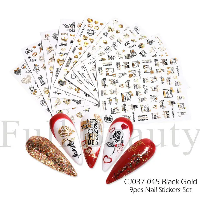 9 шт./наклейки для ногтей весна-лето черные золотые цветы розы лазерные наклейки для ногтей