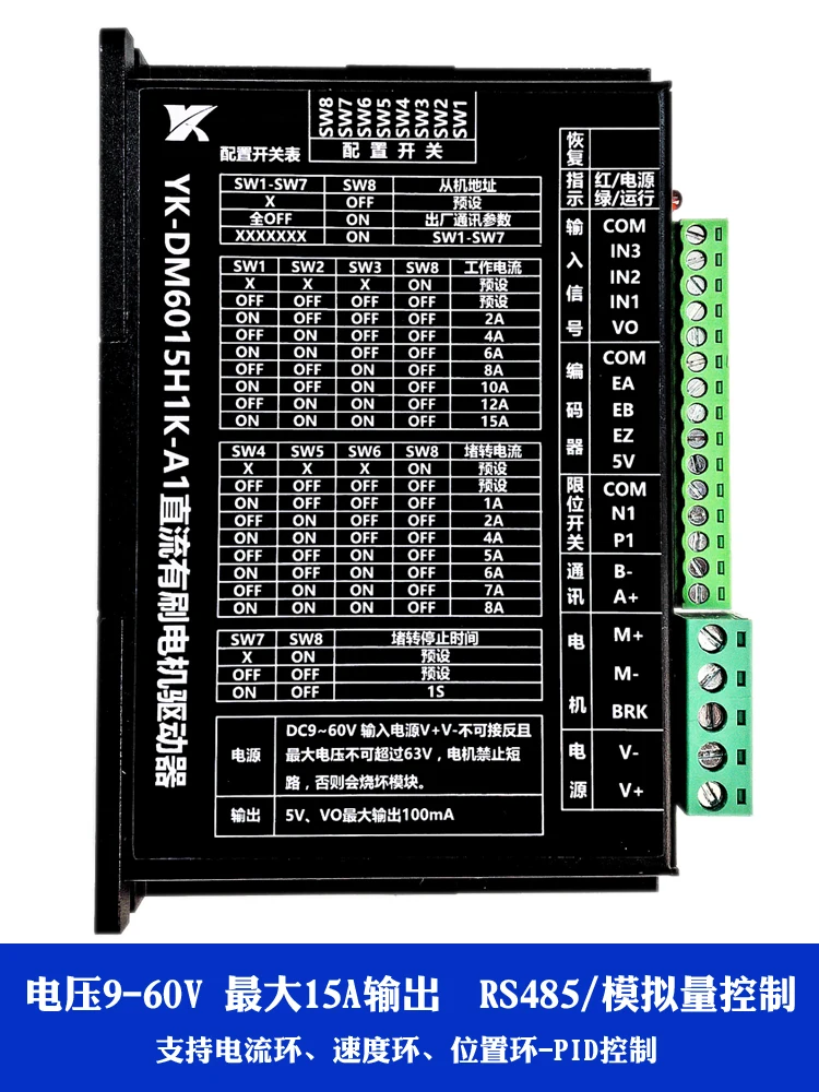 9-60V 15A DC Motor Driver/forward and Reverse Limit Speed Regulation/PID Encoder RS485 Analog Quantity