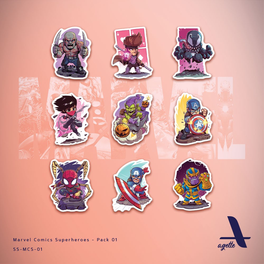 9 PCS - Stiker Marvel Comics - 01 - Laminasi - Waterproof Sticker