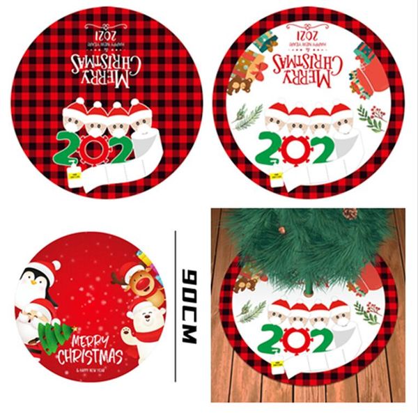 90см елочных украшений юбки плед печати ковер коврики для рождественской елки карантин семьи маска для лица шаблон украшение e101205