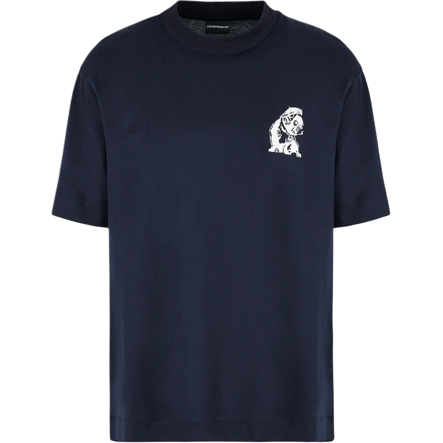 Футболка из джерси с добавлением лиоцелла с вышивкой французского бульдога EMPORIO ARMANI, морской синий